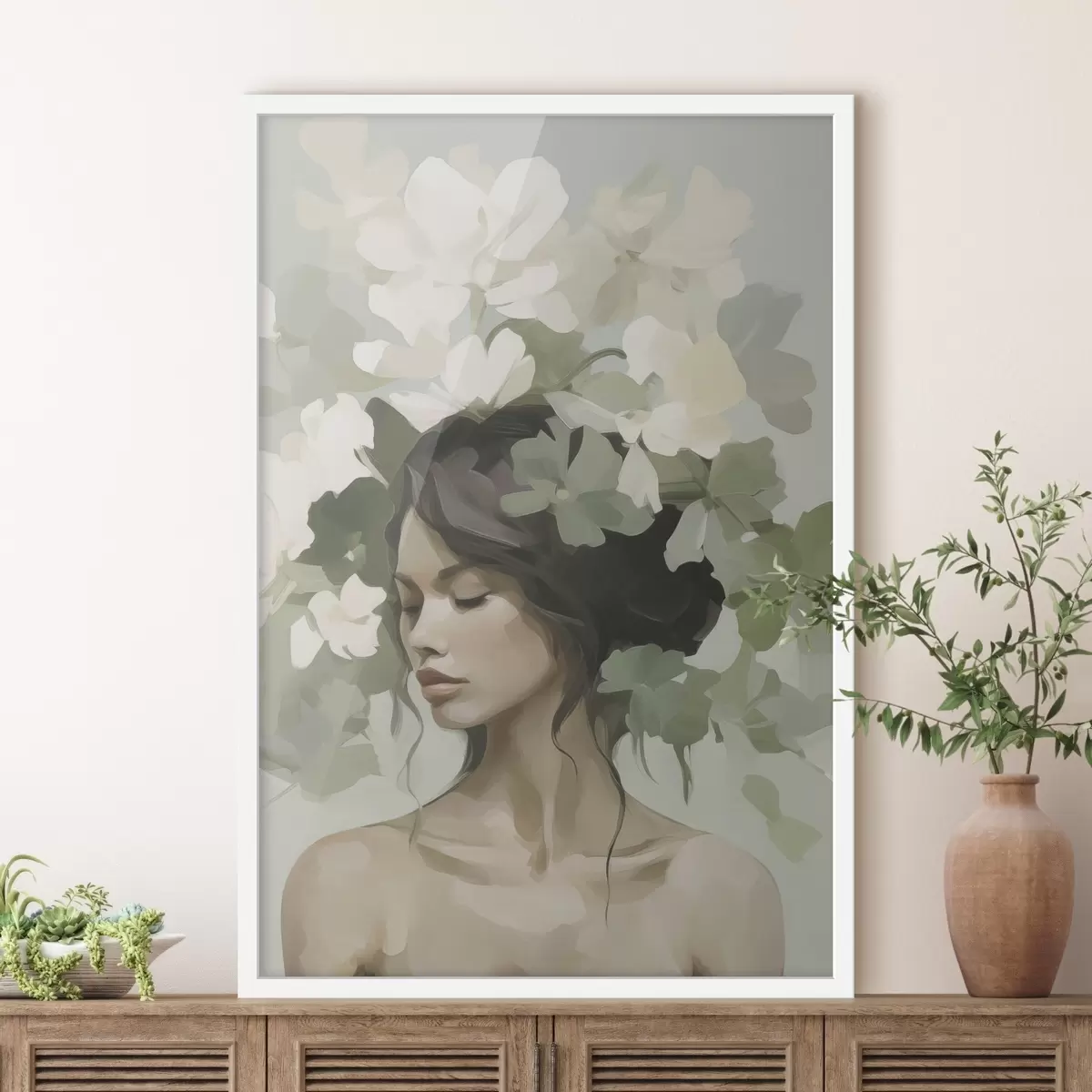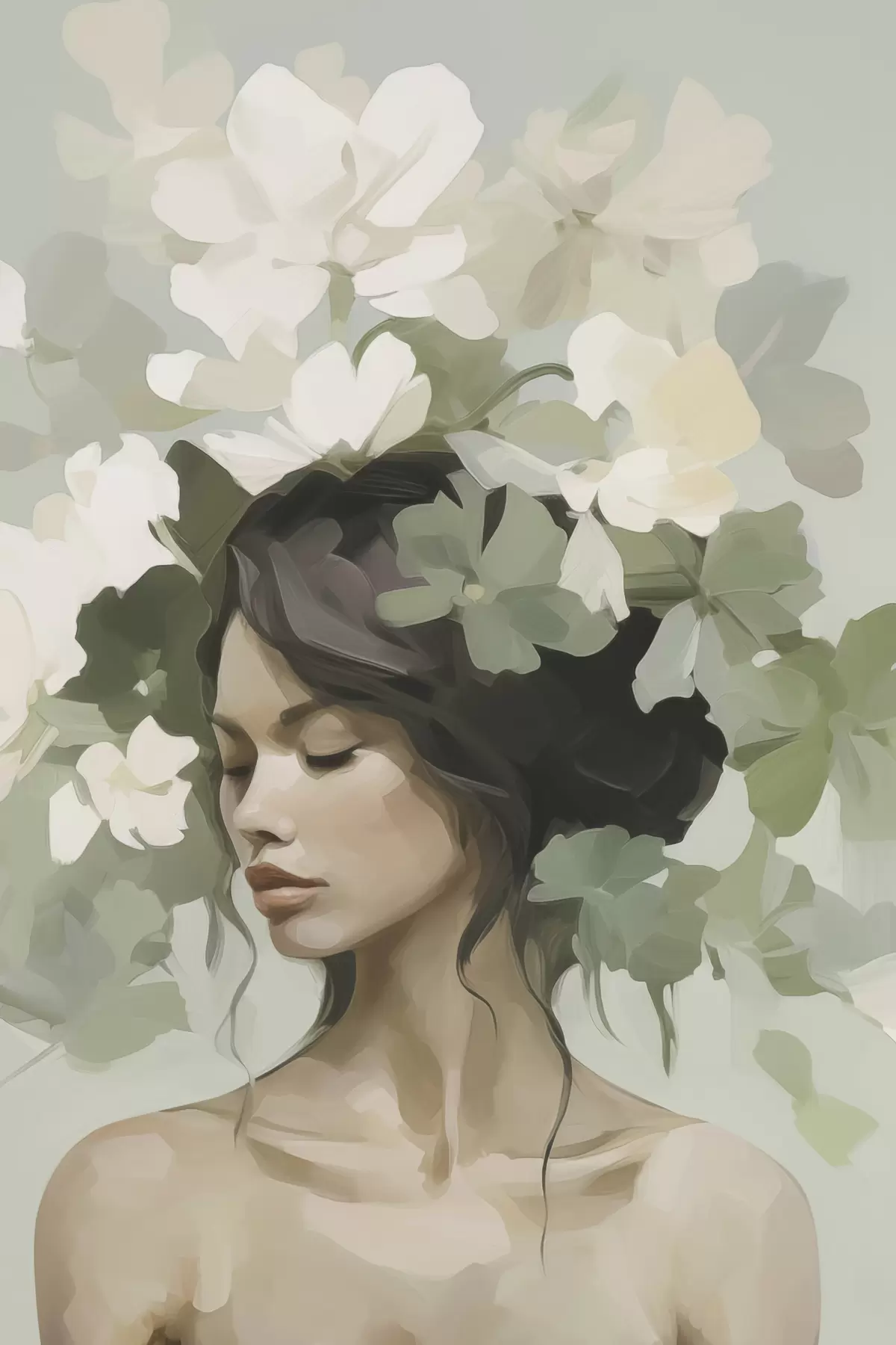 Poster Portret van een meisje met een bloemenkrans Nr f47807