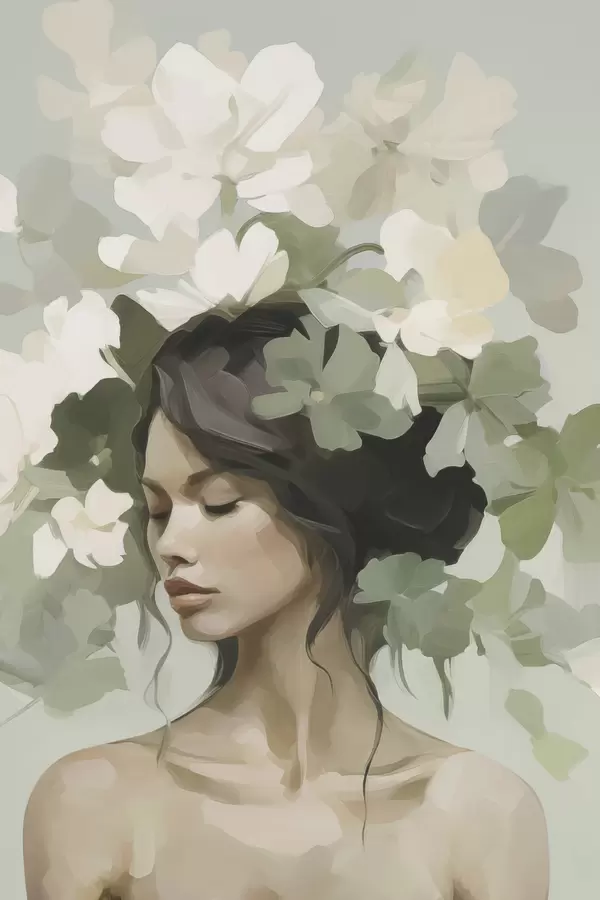 Poster Portret van een meisje met een bloemenkrans Nr f47807