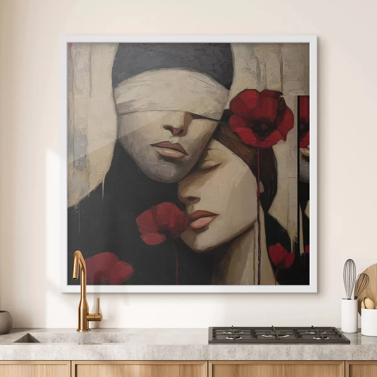 De poster bestaat uit een frame, plexiglas, geprinte afbeelding en spaanplaat achterkant. De poster kan meteen aan de muur worden gehangen dankzij de bevestigingen op de achterkant.