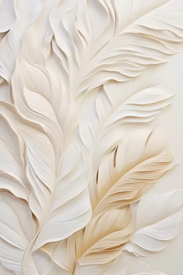 Poster Crèmekleurige veren die elkaar overlappen, met een zachte, lichte achtergrond Nr f47884