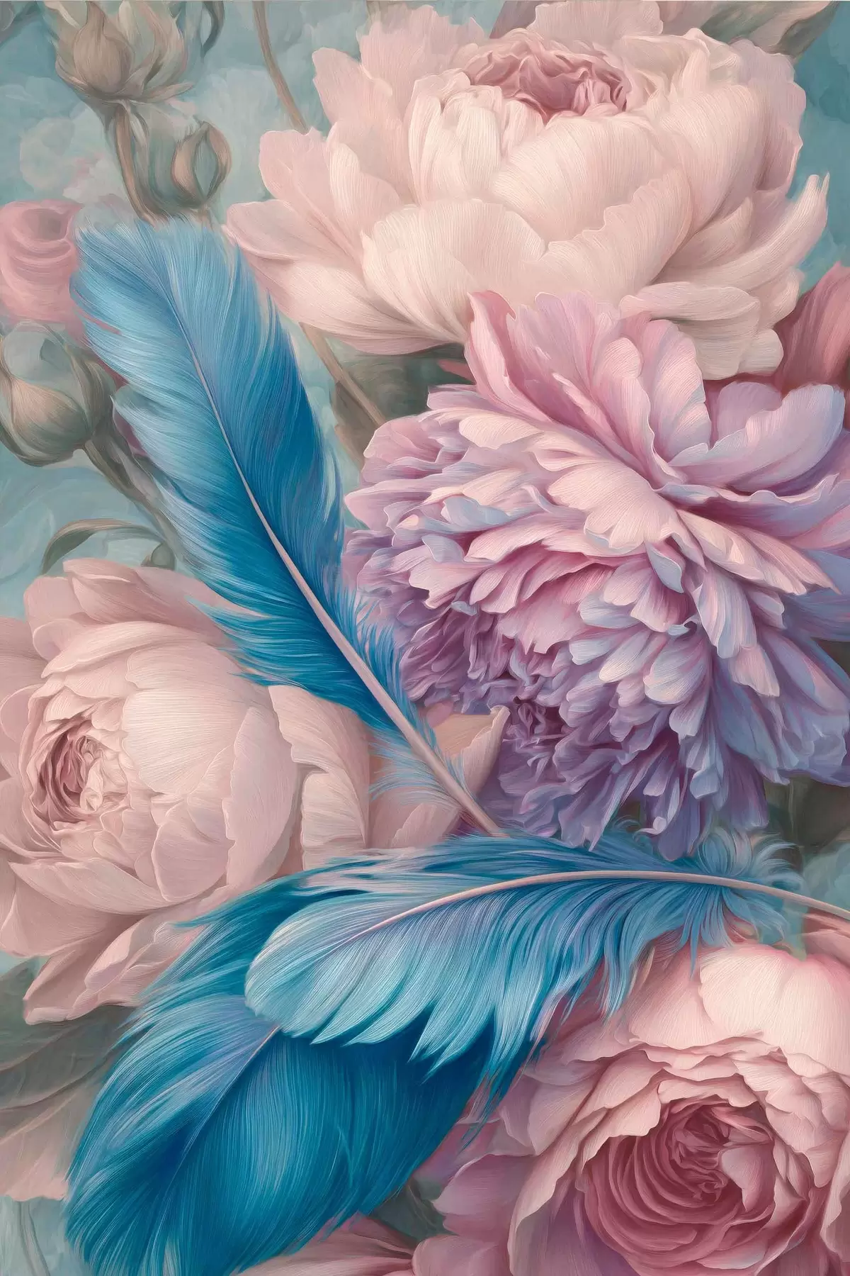 Poster veren tussen pioenrozen Nr f47939
