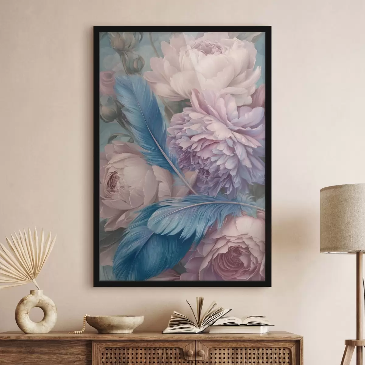Poster veren tussen pioenrozen f47939