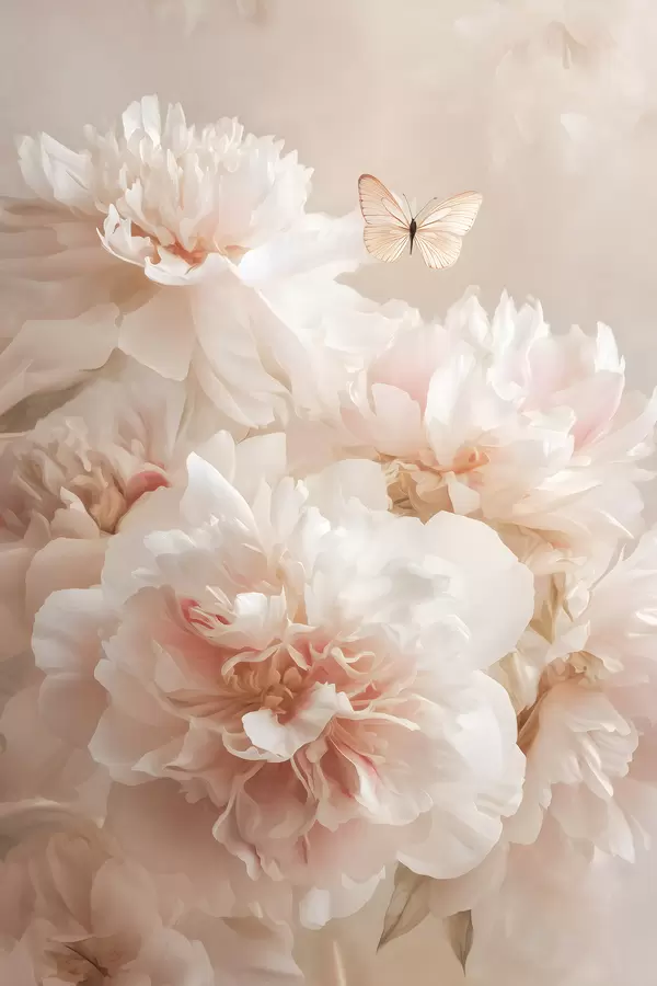 Poster weelderige roze pioenrozen met een vlinder Nr f47954