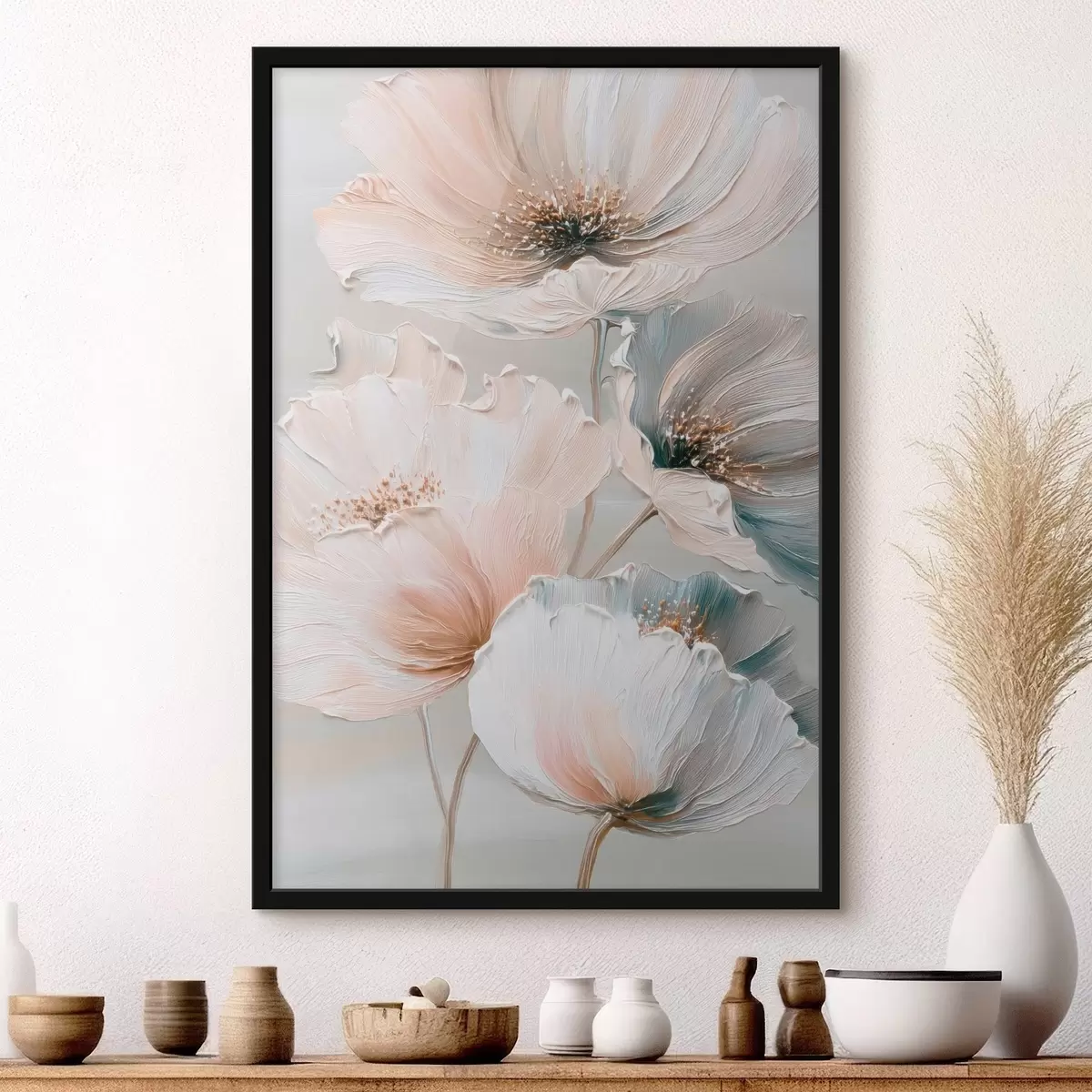 Poster Bloemcompositie met gestructureerde penseelstreken in een beige-roze kleurenpalet Nr f47961