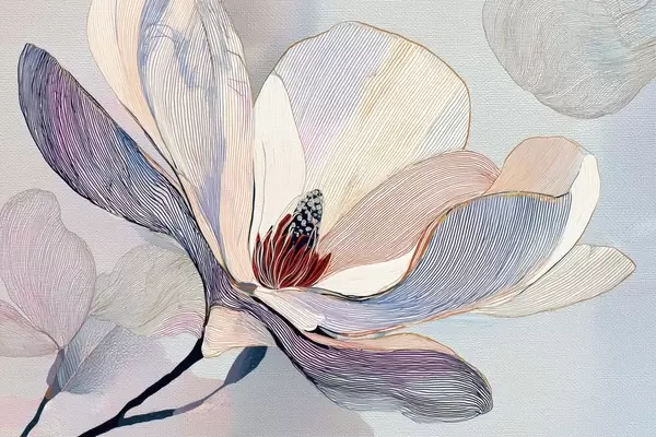 Poster Gestileerde magnoliabloemen met verfijnde contouren Nr f47968