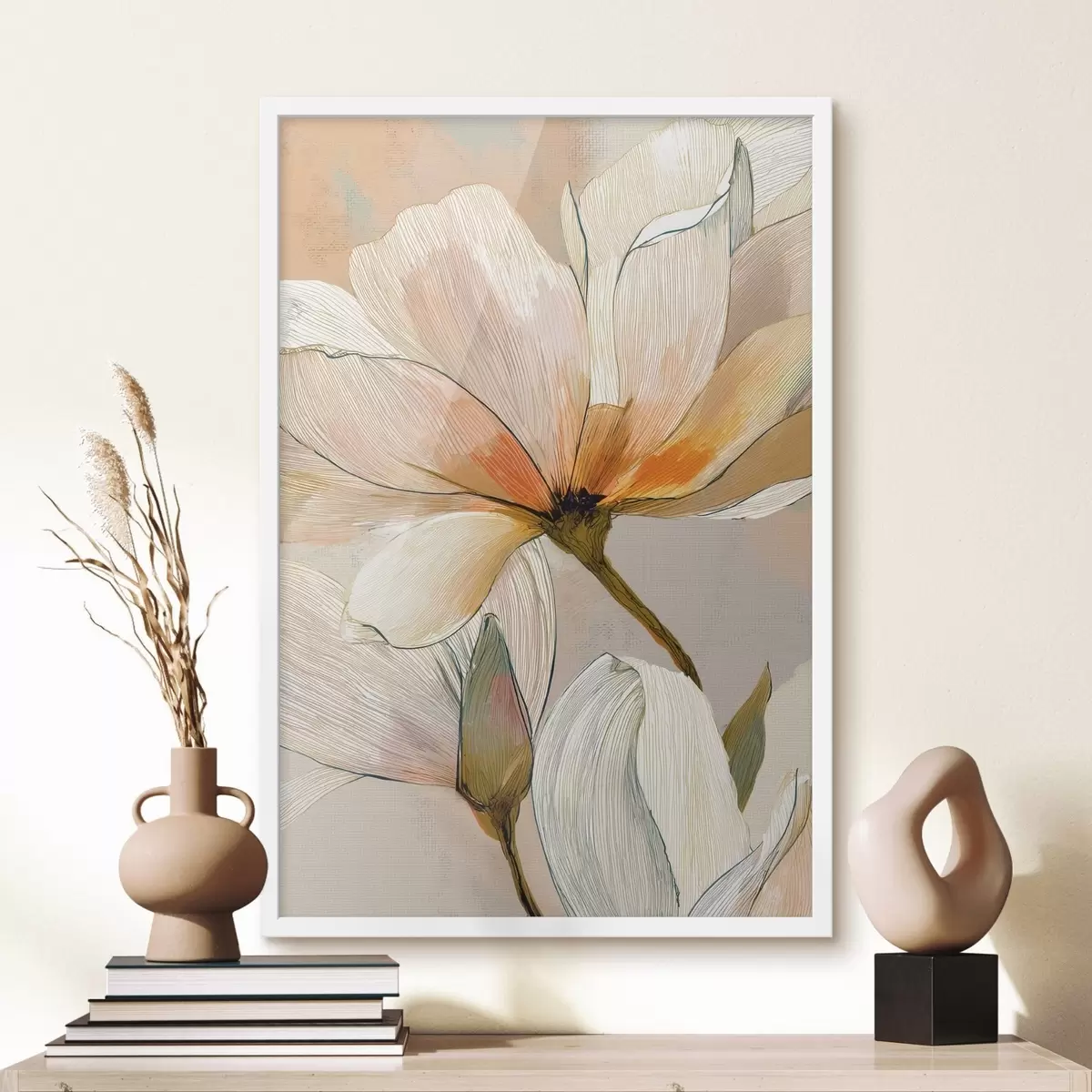 Poster Bloemstuk in perzik- en blauwtinten f47969