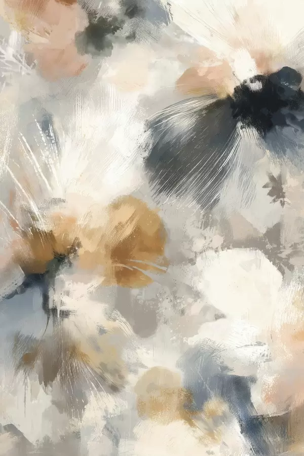 Poster Artistieke compositie met grote bloemen en lineaire grafische elementen Nr f47971