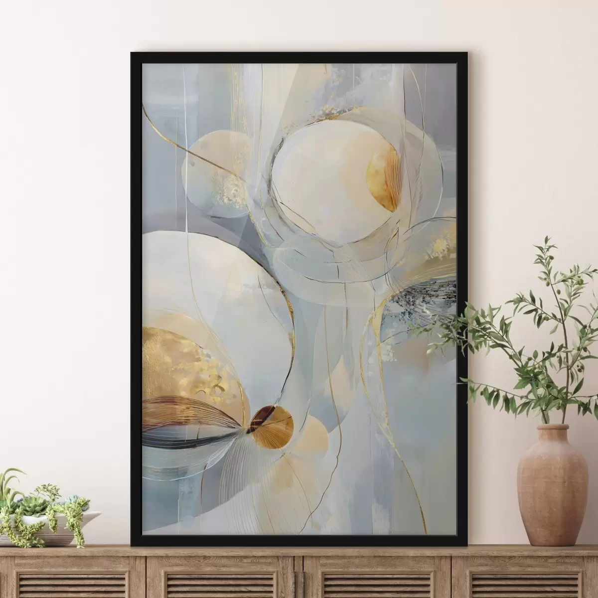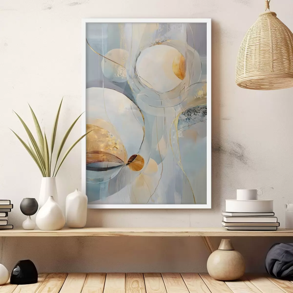 Poster Gelaagde artistieke kunstwerken in een koel kleurenpalet Nr f47982