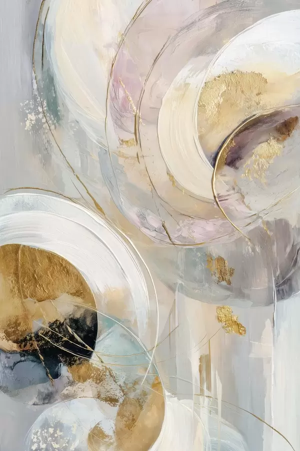 Poster Compositie met gelaagde cirkelvormige elementen en verfstreken Nr f47983