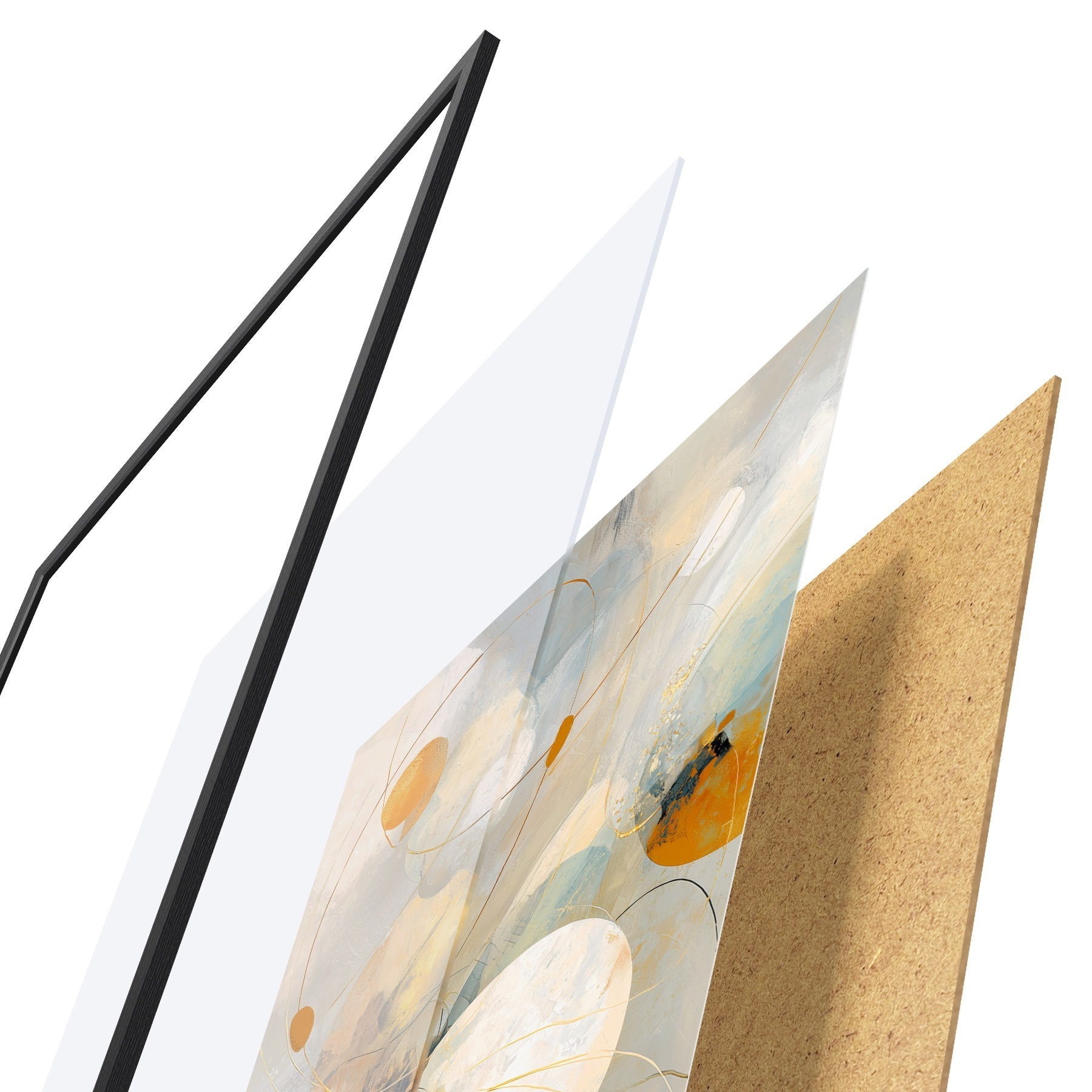 De poster bestaat uit een frame, plexiglas, geprinte afbeelding en spaanplaat achterkant. De poster kan meteen aan de muur worden gehangen dankzij de bevestigingen op de achterkant.