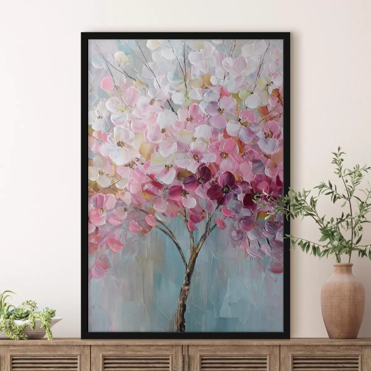 Poster Delicate roze bloesems tegen een heldere hemel Nr f47988