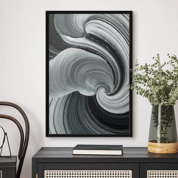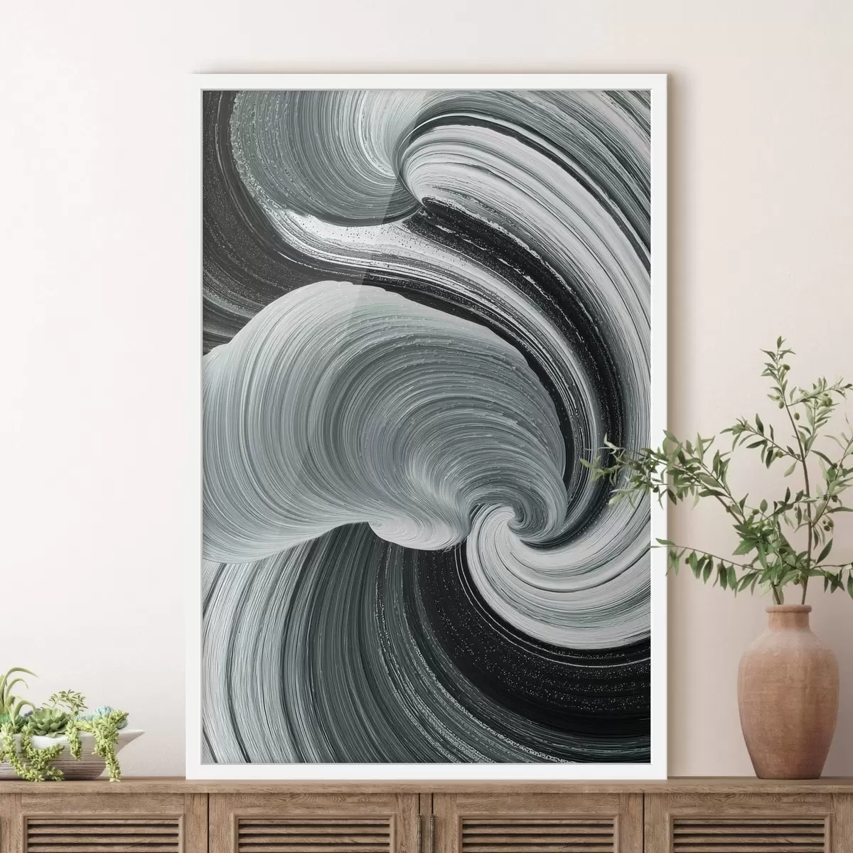 Poster Bewegingsenergie: zwart-wit abstract in een olieverfstijl Nr f47990