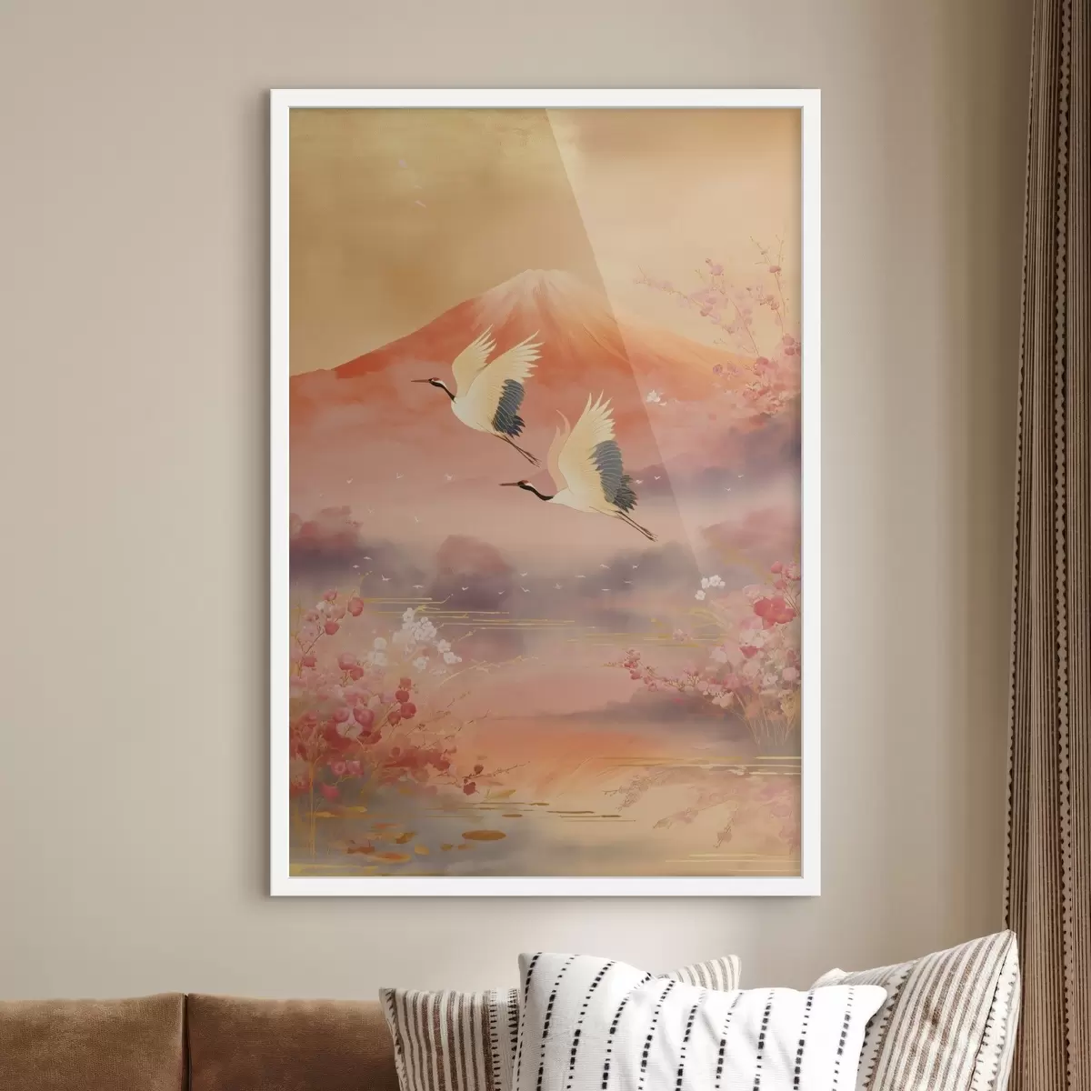 Poster Traditioneel oosters motief met kersenbloesems en kraanvogels Nr f47991