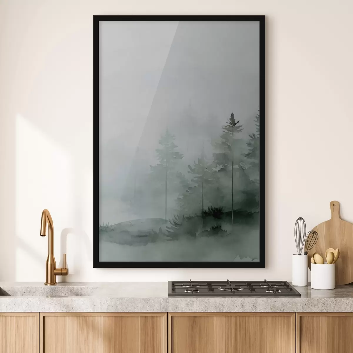 Poster Dennenbomen in het bos, imitatie aquarel f47998