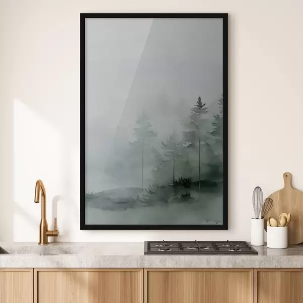 Poster Dennenbomen in het bos, imitatie aquarel Nr f47998