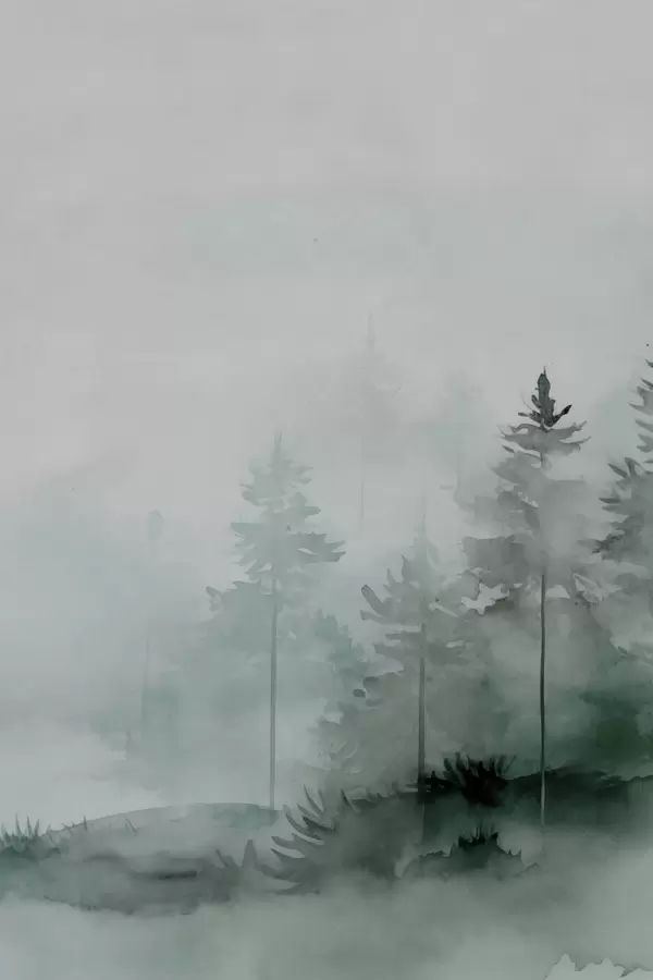 Poster Dennenbomen in het bos, imitatie aquarel Nr f47998
