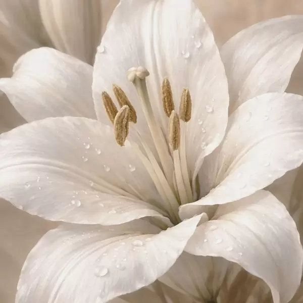 Poster Close-up van een witte bloem met waterdruppels Nr f48028