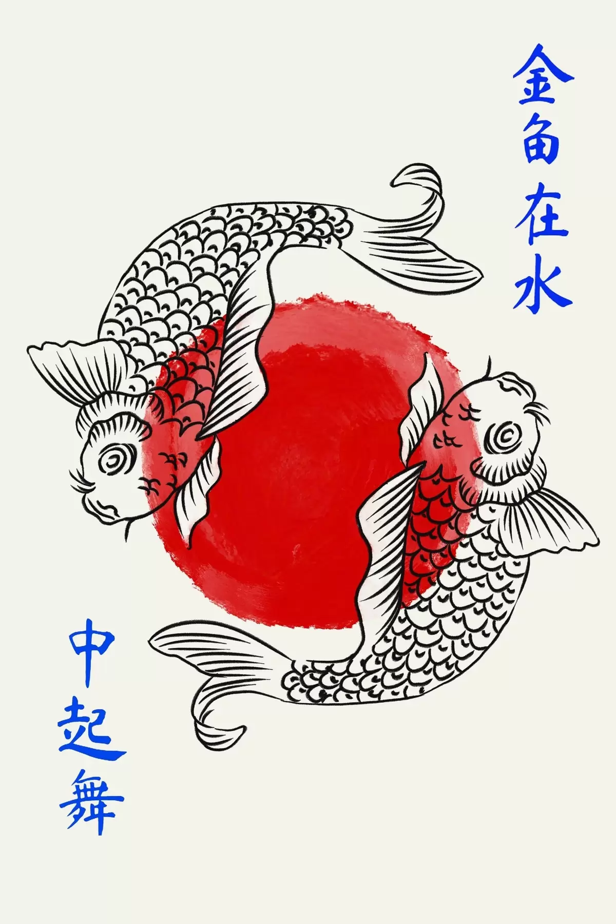 Poster Twee decoratieve vissen rond een rode cirkel Nr f48033