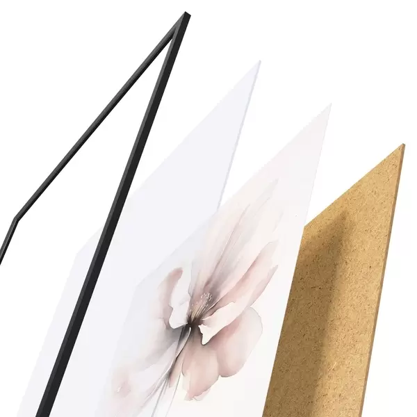 De poster bestaat uit een frame, plexiglas, geprinte afbeelding en spaanplaat achterkant. De poster kan meteen aan de muur worden gehangen dankzij de bevestigingen op de achterkant.