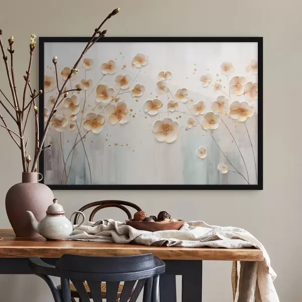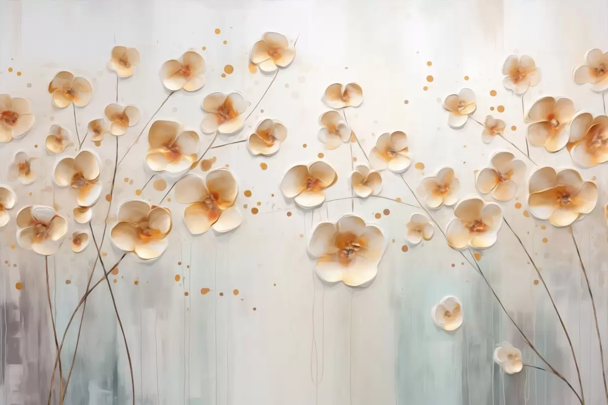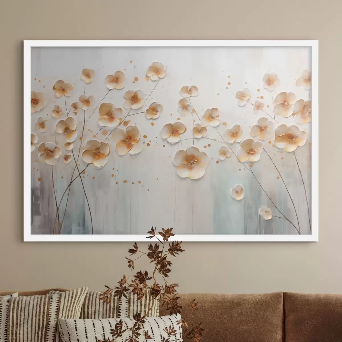 Poster Lichte bloemen met oranje accenten Nr f48087