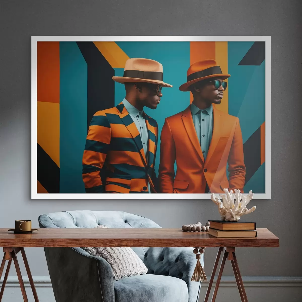 Poster Twee mannen in opvallende pakken en hoeden Nr f48091