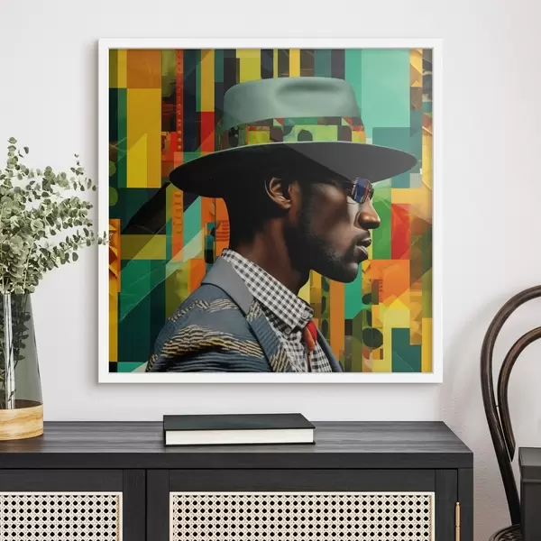 Poster Portret van een man met hoed tegen een levendige achtergrond Nr f48100