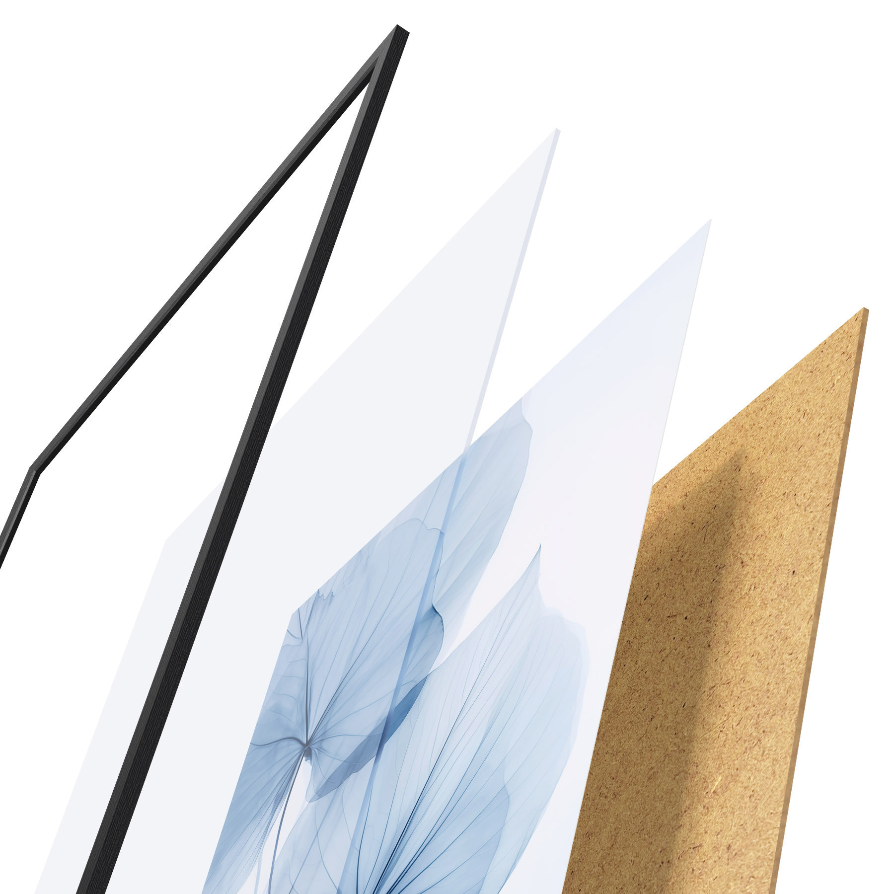 De poster bestaat uit een frame, plexiglas, geprinte afbeelding en spaanplaat achterkant. De poster kan meteen aan de muur worden gehangen dankzij de bevestigingen op de achterkant.
