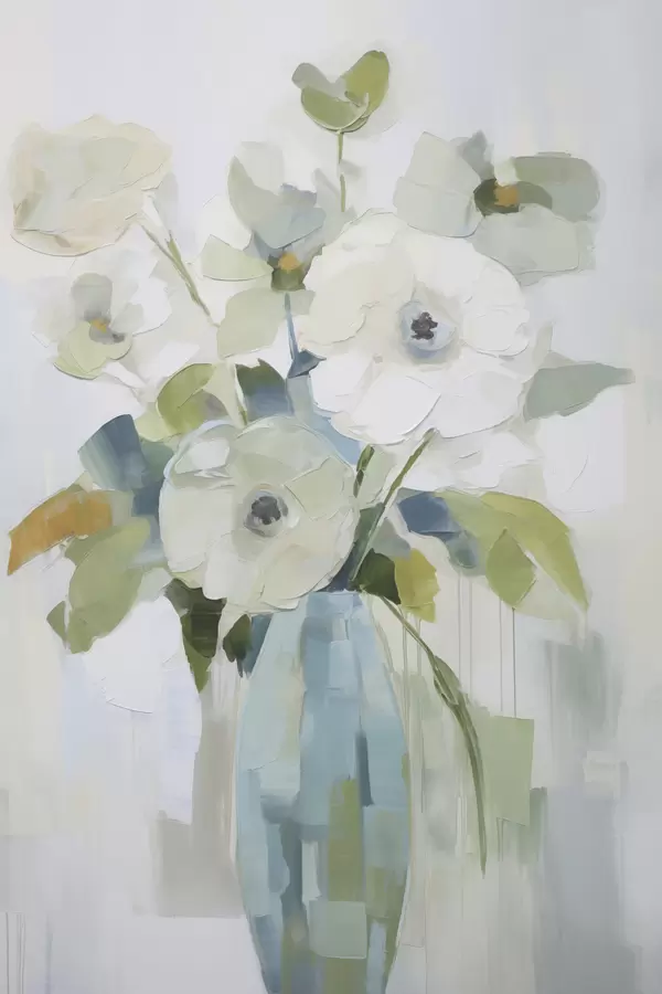 Poster Bloemen met bladeren in een vaas imitatie schilderij Nr f48168