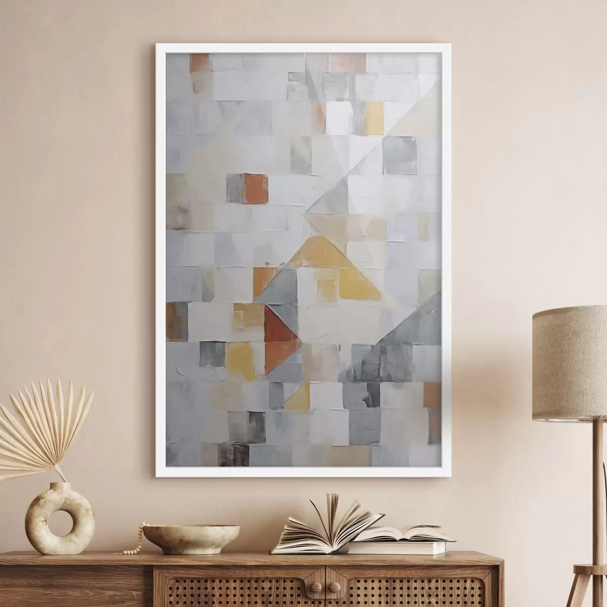 De poster bestaat uit een frame, plexiglas, geprinte afbeelding en spaanplaat achterkant. De poster kan meteen aan de muur worden gehangen dankzij de bevestigingen op de achterkant.