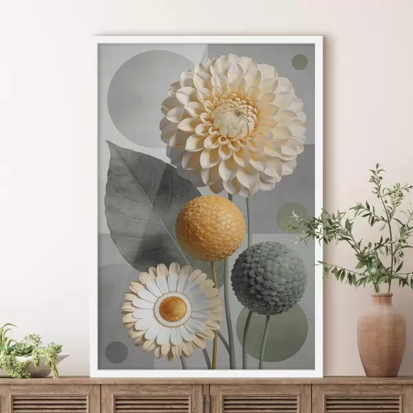 Poster Grote abstracte bloemen met geometrische elementen Nr f48178