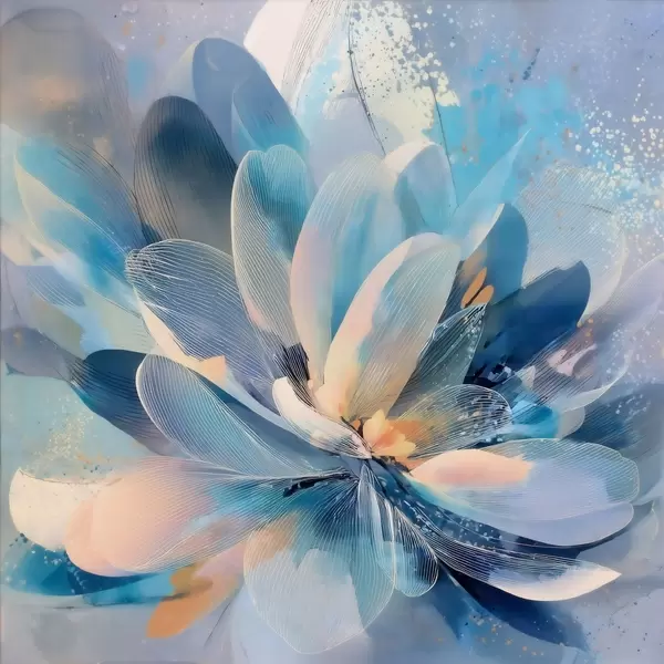 Poster Abstracte bloem in koele tinten in de stijl van een kunstposter Nr f48186