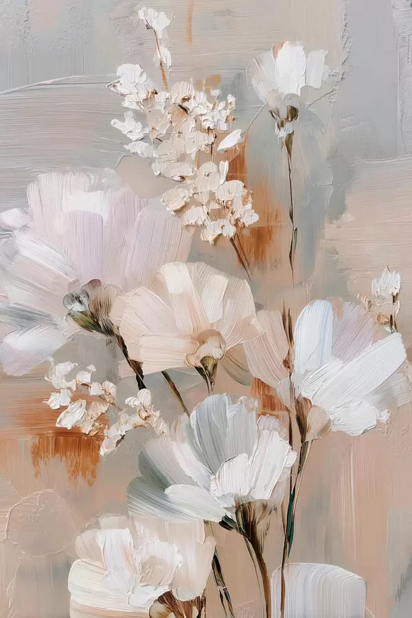 Poster Bloemstuk in pasteltinten in de stijl van een olieverfschilderij Nr f48194