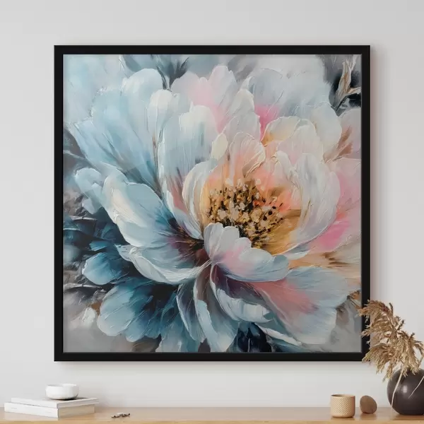 Poster Grote pioenroos met expressieve, gestructureerde penseelstreken in een eigentijdse schilderstijl Nr f48197