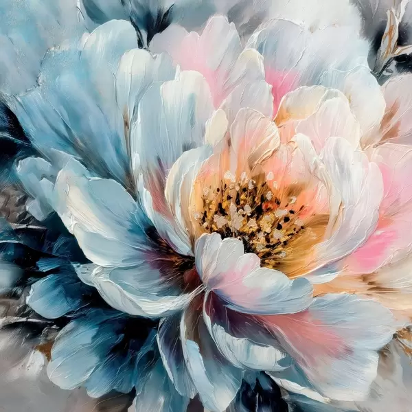 Poster Grote pioenroos met expressieve, gestructureerde penseelstreken in een eigentijdse schilderstijl Nr f48197