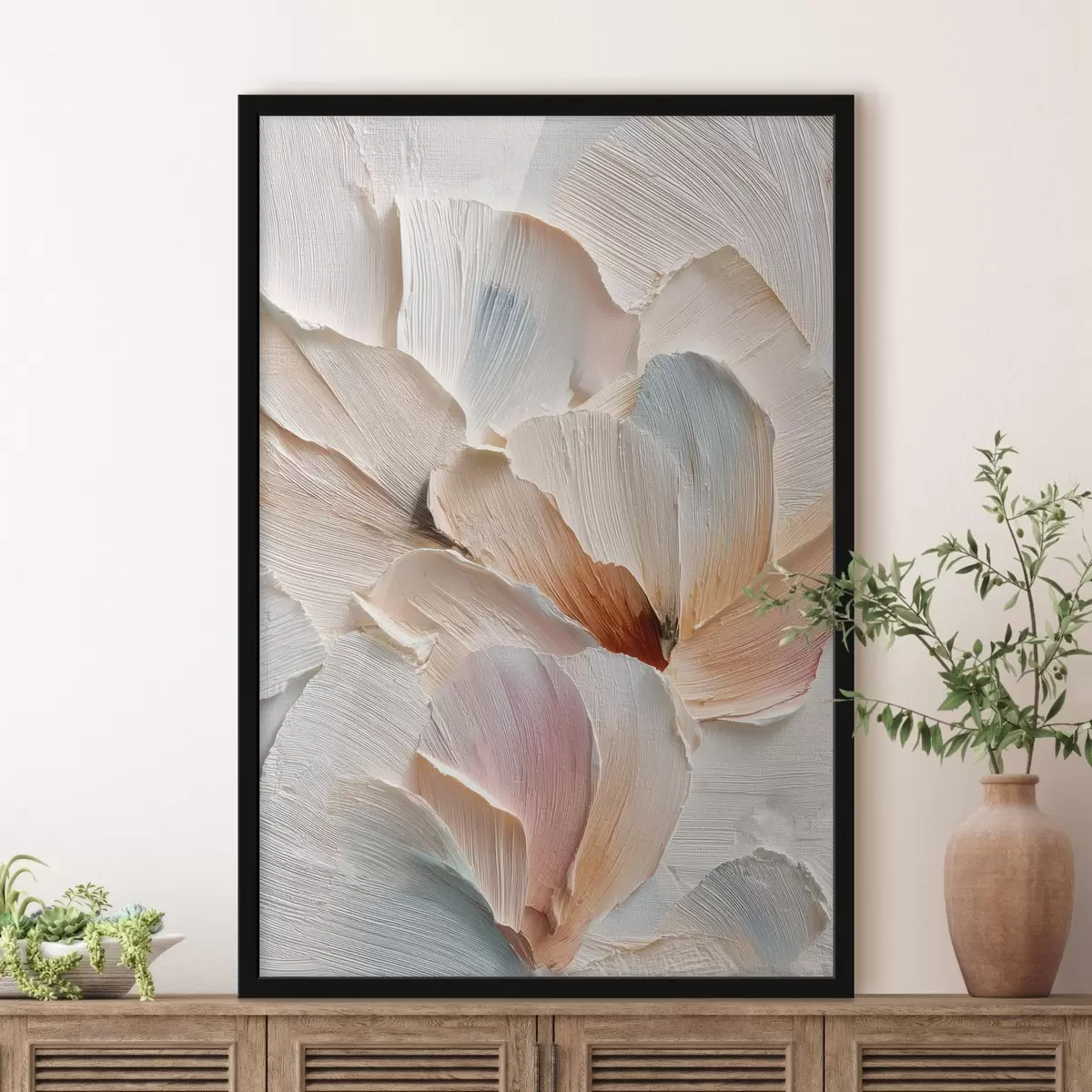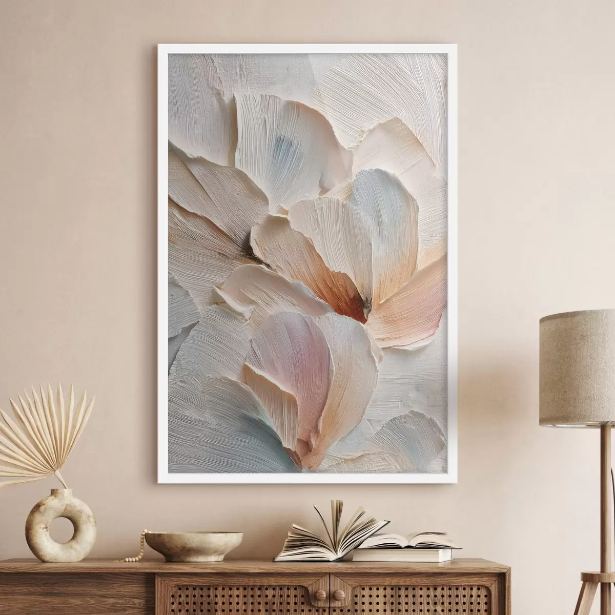 Poster Gestileerde compositie met een effect van dikke penseelstreken op een lichte achtergrond f48200