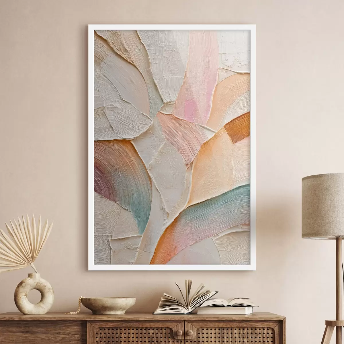 Poster Een abstracte achtergrond met dynamische penseelstreken in perzik- en blauwtinten Nr f48202