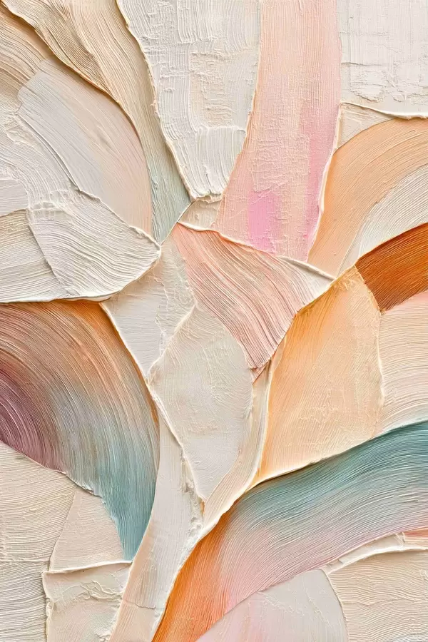 Poster Een abstracte achtergrond met dynamische penseelstreken in perzik- en blauwtinten Nr f48202