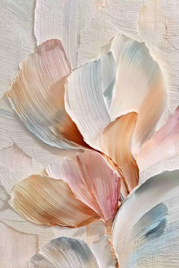 Poster Gestileerde compositie met een effect van dikke penseelstreken op een lichte achtergrond f48203