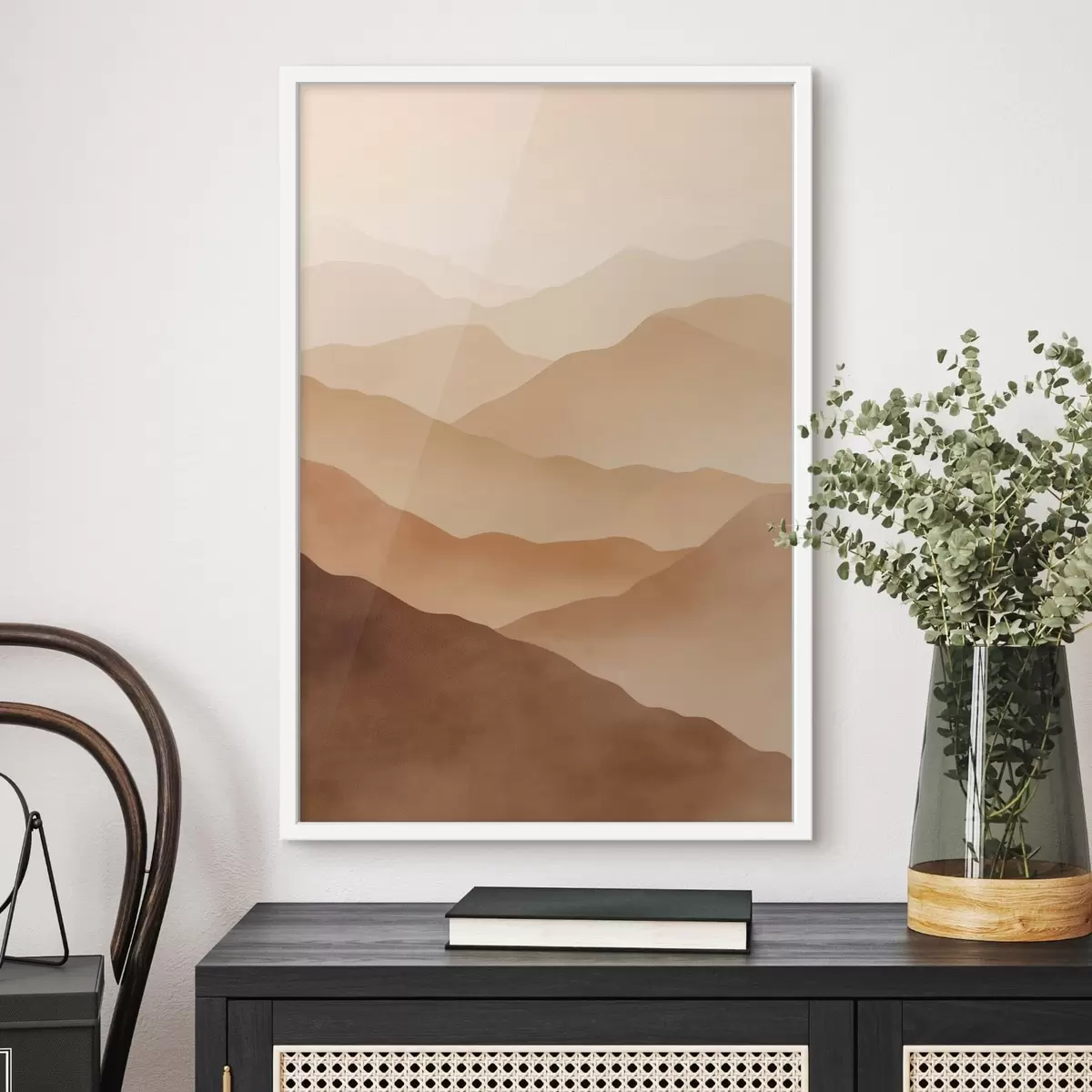 Je kunt het schilderij ophangen aan schroeven. Hiervoor leveren we bevestigingen bij onze foto's, zodat je de foto gemakkelijk kunt ophangen.