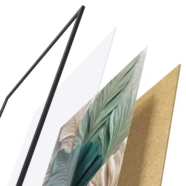 De poster bestaat uit een frame, plexiglas, geprinte afbeelding en spaanplaat achterkant. De poster kan meteen aan de muur worden gehangen dankzij de bevestigingen op de achterkant.