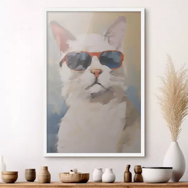 Poster Kat met bril imitatie van schilderij Nr f48273