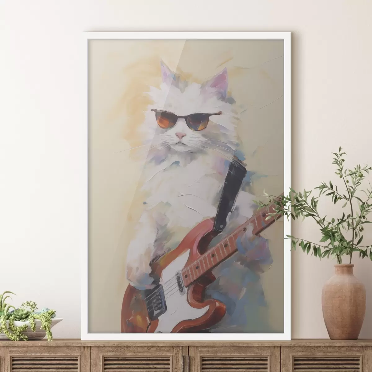 Poster Kat met een gitaar imitatie schilderij f48274