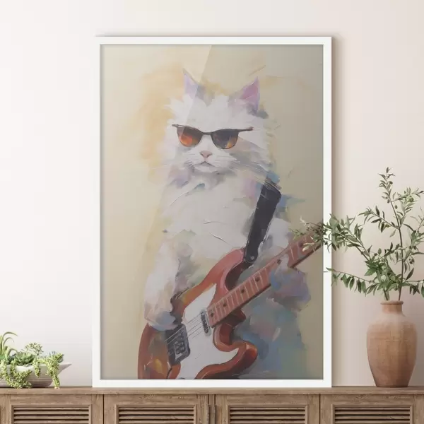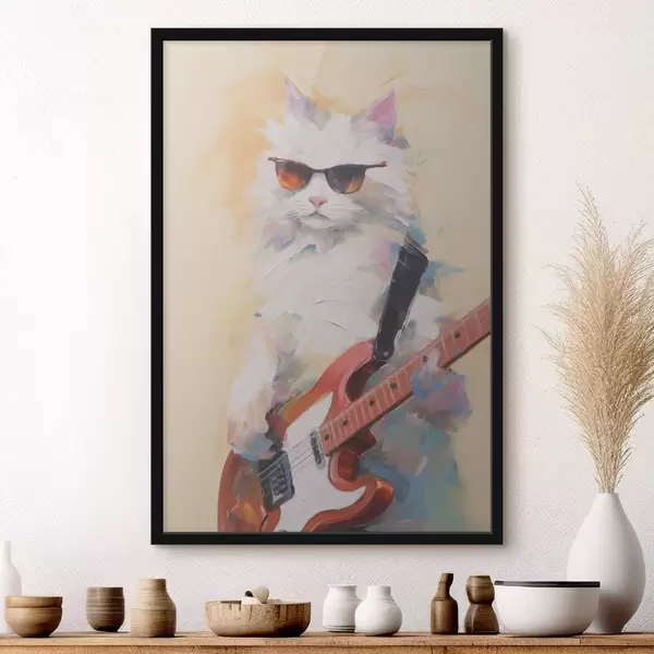 Poster Kat met een gitaar imitatie schilderij Nr f48274