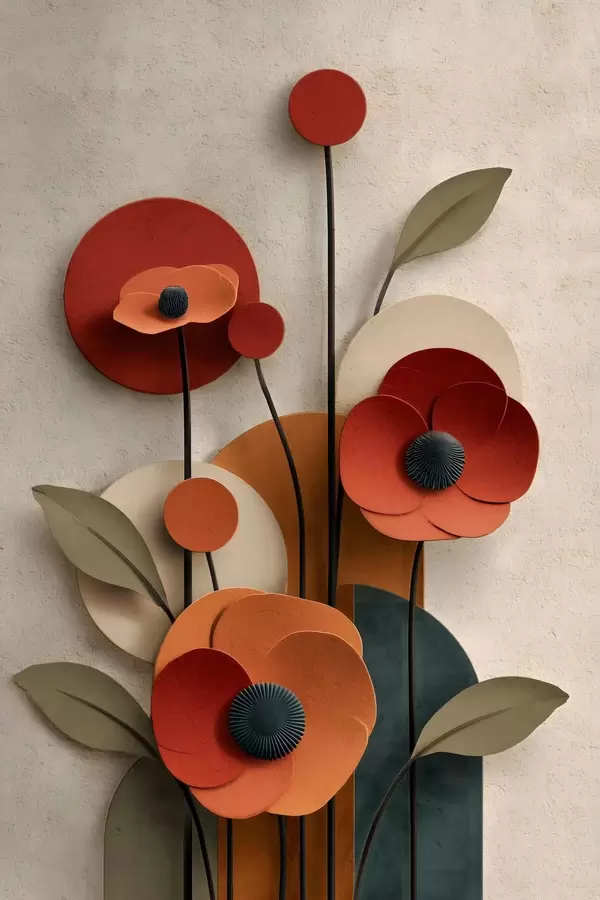 Poster bloemen in een vereenvoudigde stijl met een volume-effect Nr f48293