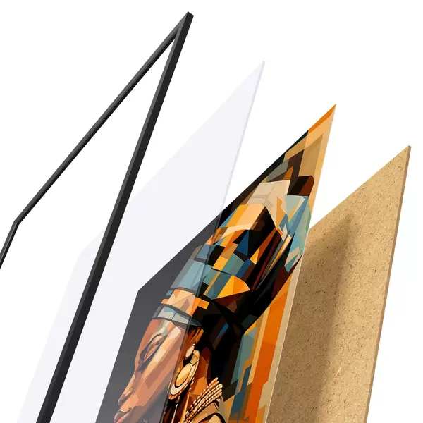 De poster bestaat uit een frame, plexiglas, geprinte afbeelding en spaanplaat achterkant. De poster kan meteen aan de muur worden gehangen dankzij de bevestigingen op de achterkant.