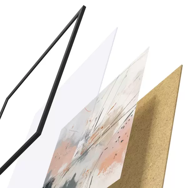 De poster bestaat uit een frame, plexiglas, geprinte afbeelding en spaanplaat achterkant. De poster kan meteen aan de muur worden gehangen dankzij de bevestigingen op de achterkant.