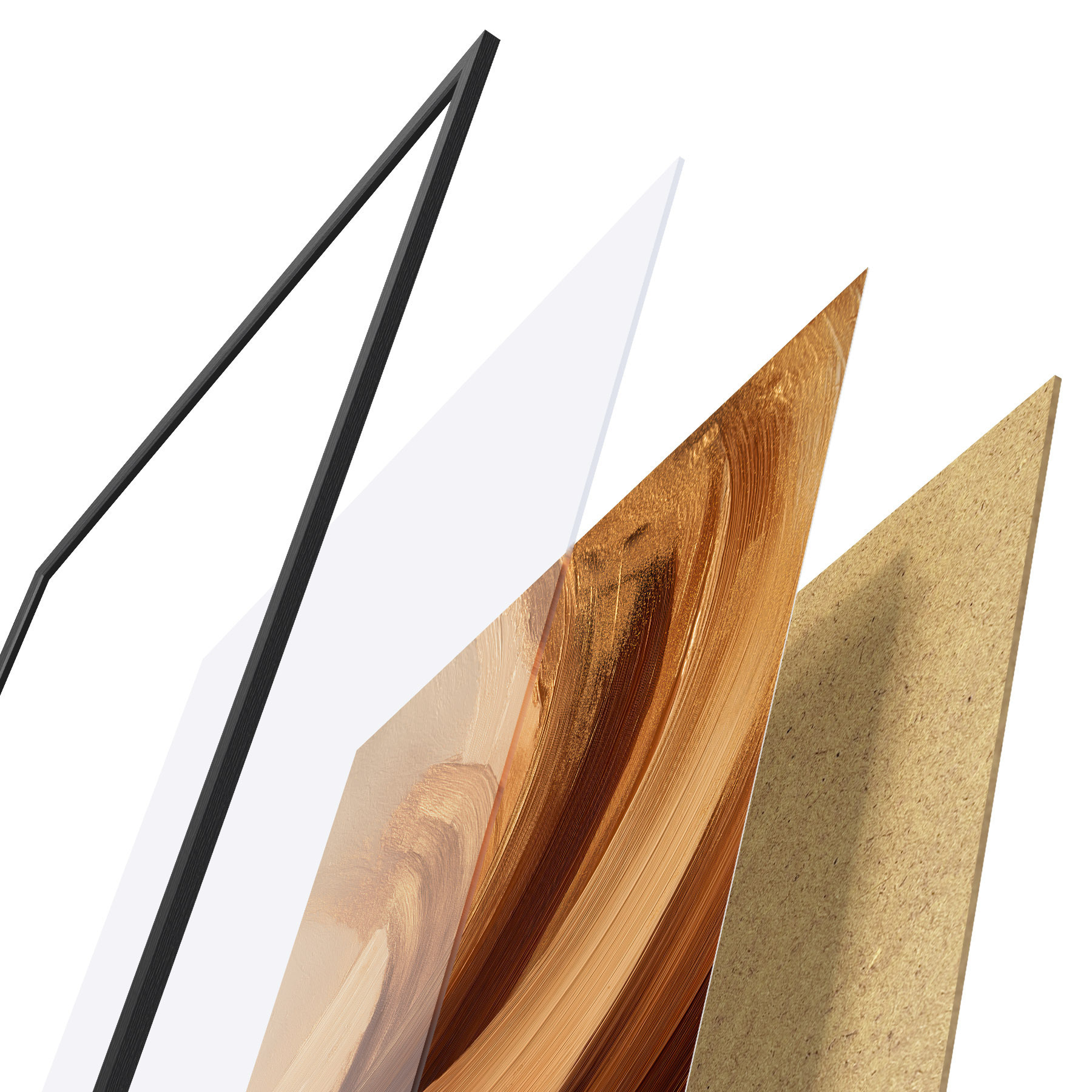 De poster bestaat uit een frame, plexiglas, geprinte afbeelding en spaanplaat achterkant. De poster kan meteen aan de muur worden gehangen dankzij de bevestigingen op de achterkant.