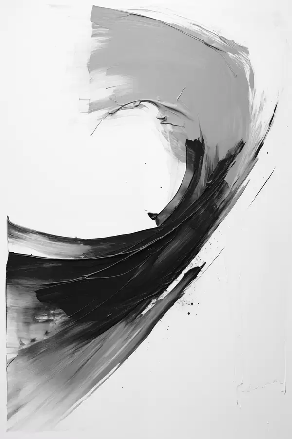 Poster Abstracte zwarte penseelstreek op een witte achtergrond Nr f48326