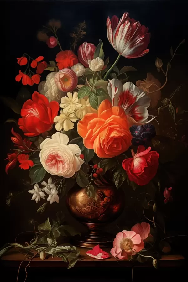 Poster Bloemenboeket in een vaas tegen een donkere achtergrond Nr f48351