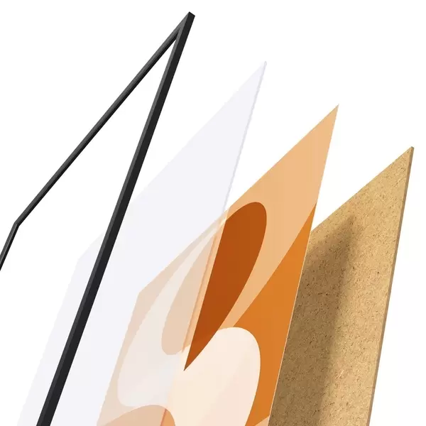 De poster bestaat uit een frame, plexiglas, geprinte afbeelding en spaanplaat achterkant. De poster kan meteen aan de muur worden gehangen dankzij de bevestigingen op de achterkant.
